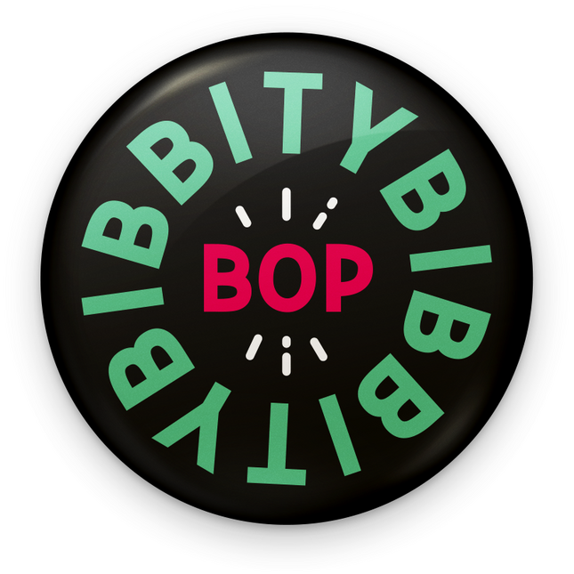 Our first bit of improv merch, much discussed but never replicated.Whether you play "bibbity bibbity bop" or "bippity bippity bop", this is you're siren song to those who love warm up games.